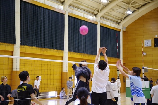 競技種目は春季スポーツ大会と同じくソフトバレーボールだよ。都留キャンパスは今回も生産・電子1年2年全員で1チームとしてエントリーしたんだ。