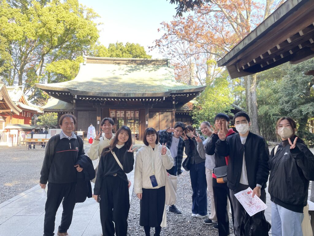 観光ビジネス科2年生は、3グループに分かれて日帰りバスツアーを企画・プレゼンテーションを行い、その中から選ばれた川越と渋沢栄一記念館のツアーに実際に行ってきました。途中のインフォメーションや添乗員としての業務も学生が担当します。当日は季節外れの暖かさのなか、まずは氷川神社からスタートです。