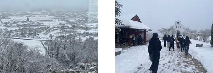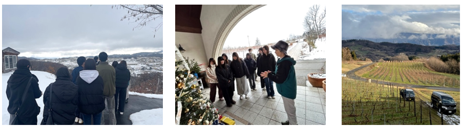 12月5日、ワインリゾート演習の授業で長野県飯綱町の㈱サンクゼールの「サンクゼールの丘」を訪問しました。観光ビジネス科の1年生と引率職員が参加し、主にワイナリーの経営やブドウ栽培について学びました。