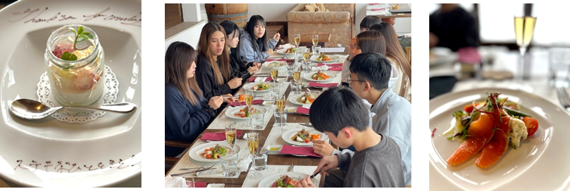 昼食は隣接するワイナリーレストランで。ノンアルコールのスパークリングで乾杯した後、地元食材を使った料理やメッセージ入りデザートなどが提供され、ワインと食のマッチングをイメージすることができ、心温まるサービスを受けました。🍷