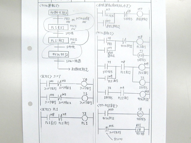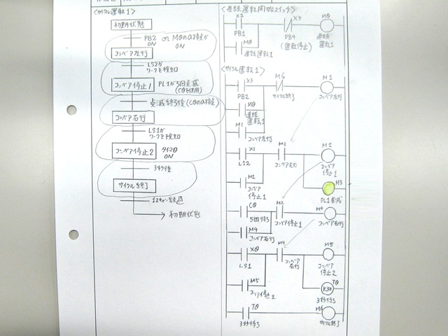 今回取り組んだ問題では、コンベアの連続運転に加えて、有限回繰り返しとして「パイロットランプの5回点滅」が含まれています。