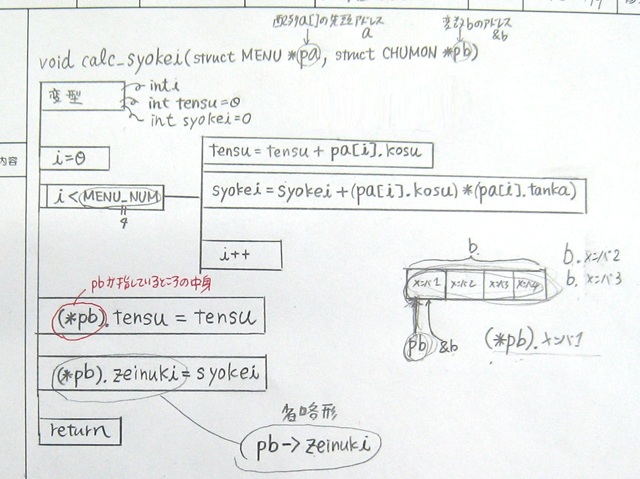 こちらは「注文点数と小計を表示する関数」の設計図です。