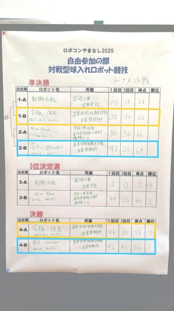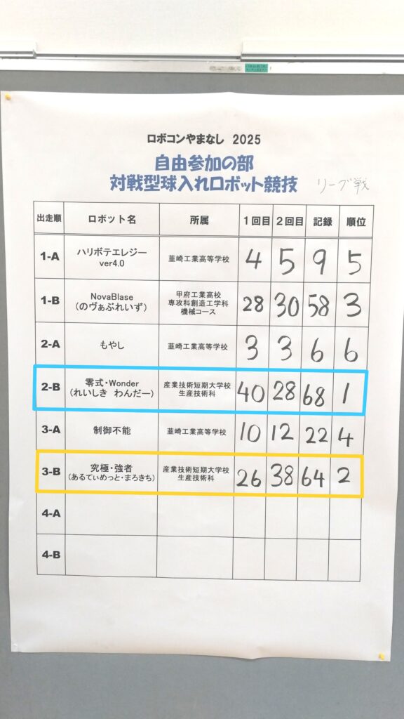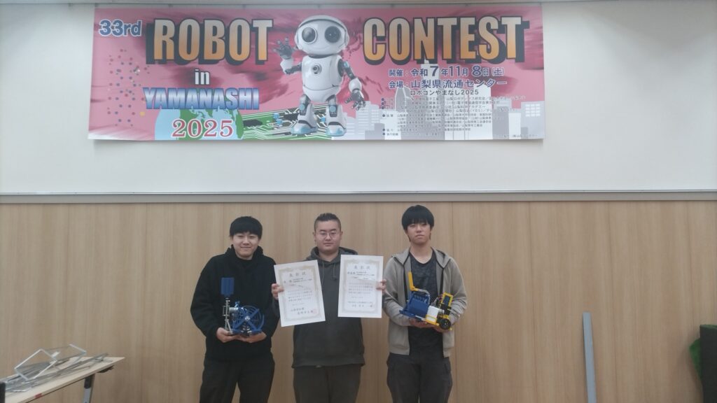 11月18日、第33回ロボコンやまなし2025が開催され、生産技術科塩山キャンパスチームは「自由参加の部 対戦型球入れロボット競技」に出場し、優勝・準優勝を受賞しました。