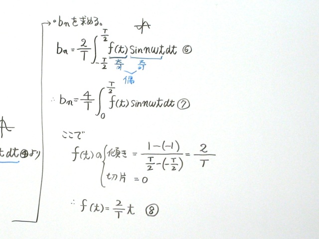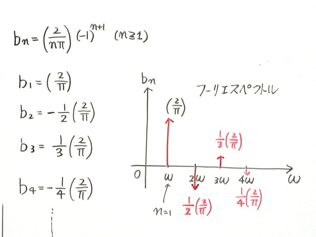 のこぎり波の場合、cosの成分はゼロになります。